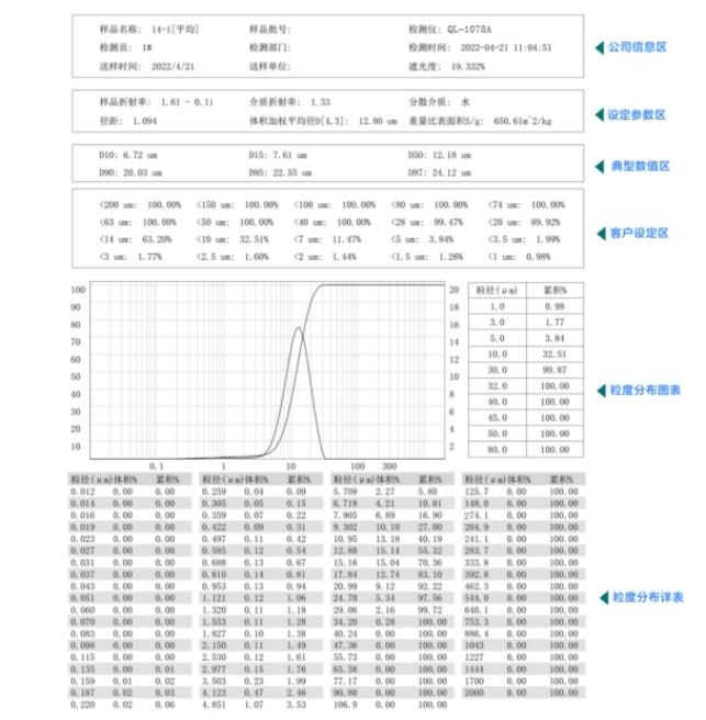 顯示模板粒徑區間求百分比,以滿足不同行業對粒度測試的表征方式。徑距、一致性、區間累積等等