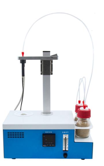 - 操作方便,用戶只需要設(shè)置合適的溫度,合適的流量,把樣品放入事先準備好的樣品瓶,放入加熱器,然后把傳輸針扎入樣品瓶的硅膠墊,在儀器上點開始測量即可。