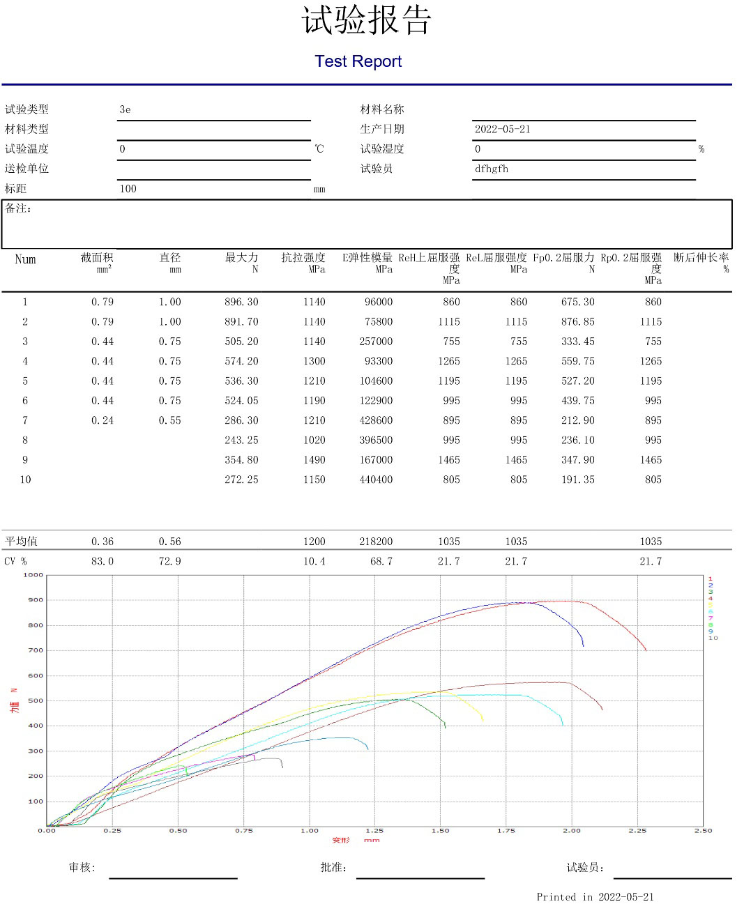 G.測試結(jié)束可自動存檔、手動存檔,測試完畢自動求算最大力量、上、下屈服強度、滯后環(huán)法、逐步逼近法、非比例延伸強度、抗拉強度、抗壓強度、任意點定伸長強度、任意點定負(fù)荷延伸、彈性模量、延伸率、剝離區(qū)間最大值、最小值、平均值、凈能量、折返能量、總能量、彎曲模量、斷點位移x%荷重、斷點荷重X%位移、等等。 數(shù)據(jù)備份:測試數(shù)據(jù)可保存在任意硬盤分區(qū)。